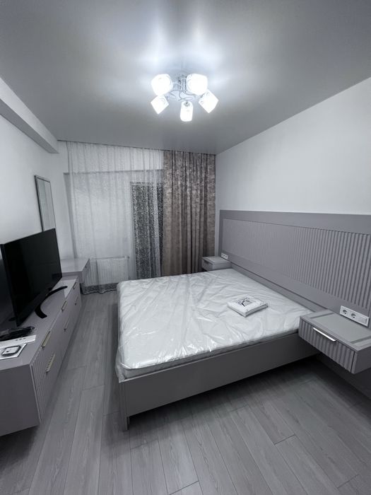 • Спальня: Простора та затишна, обладнана новим меблевим гарнітуром — зручне ліжко, тумбочки, сучасне освітлення та телевізор. Меблі виконані з якісних матеріалів для забезпечення максимального комфорту.