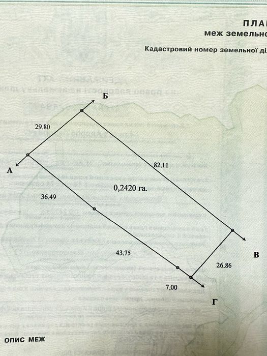 - Ділянка №1 — 0,242 га (24,2 сотки), цільове призначення: будівництво та обслуговування житлового будинку.