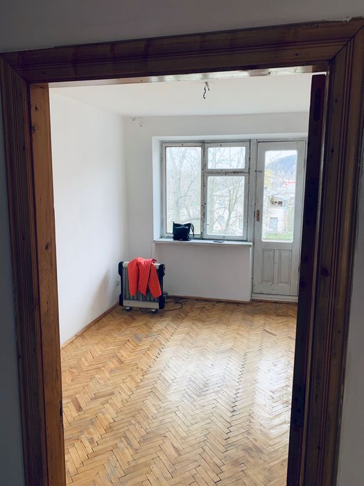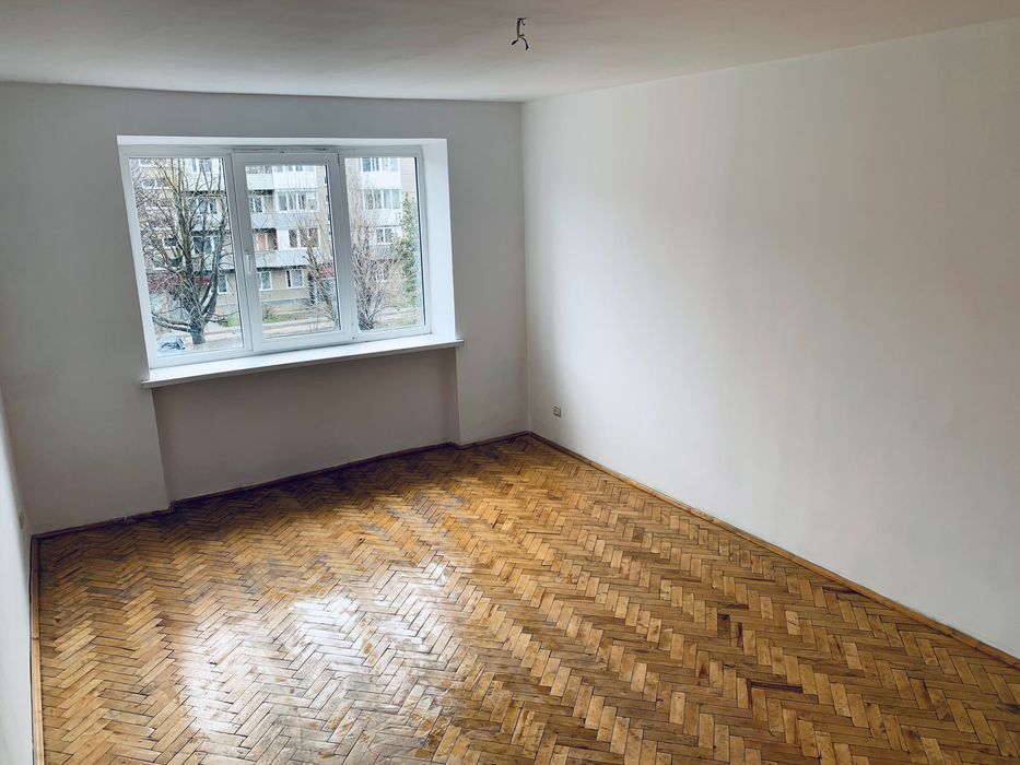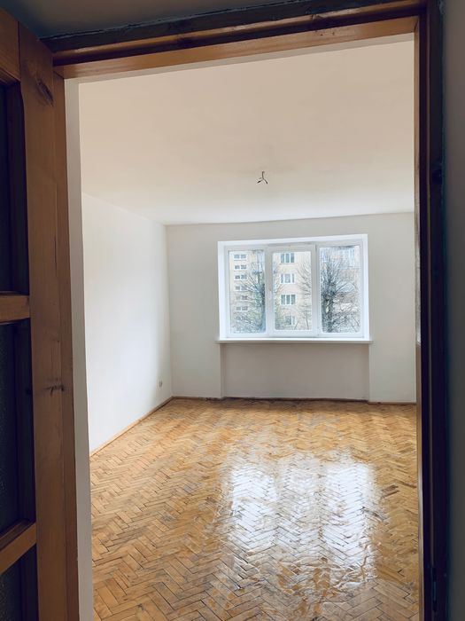 3-й поверх. Балкон виходить у двір. В кімнатах паркет, коридор та кухня стяжка, шпакльовані/мальовані стіни. Ванна штукатурка - під ремонт.