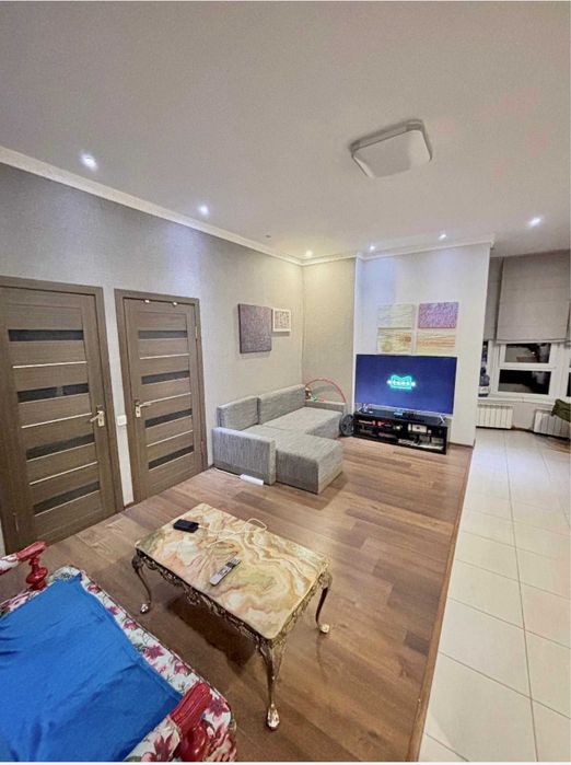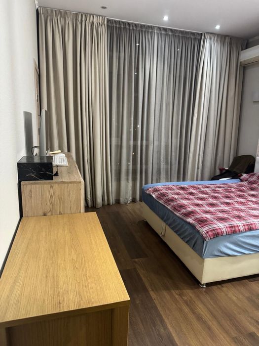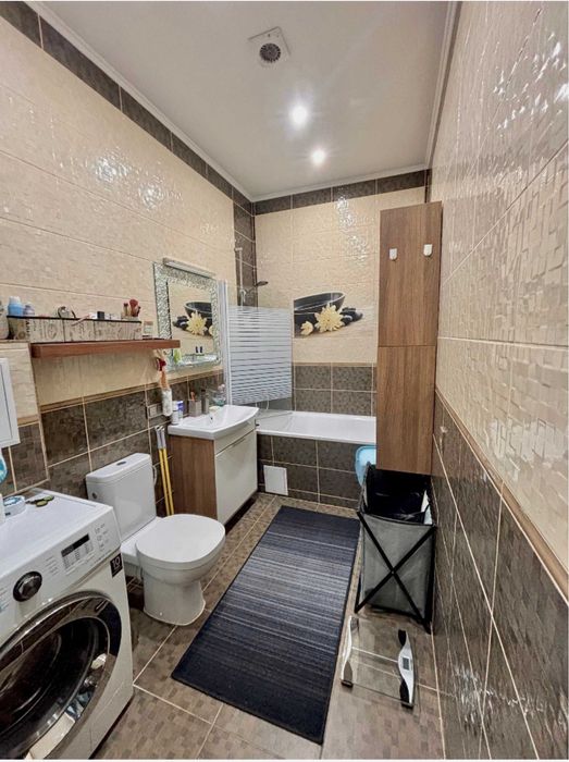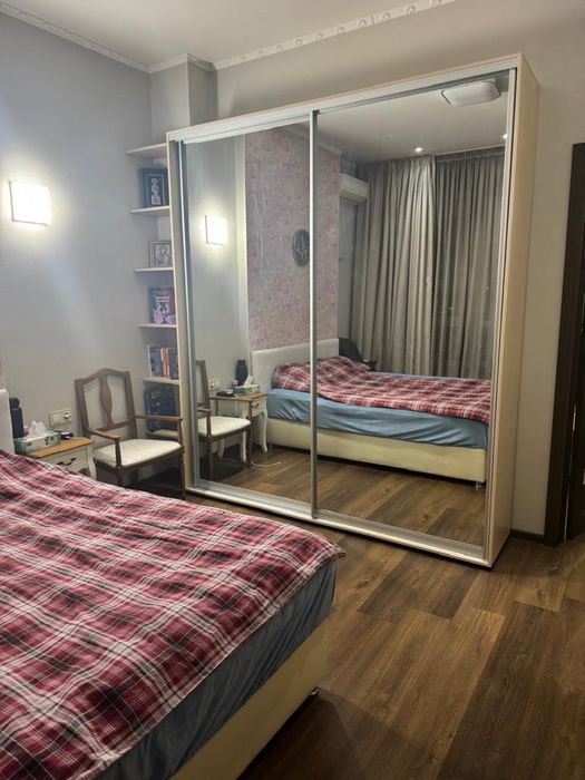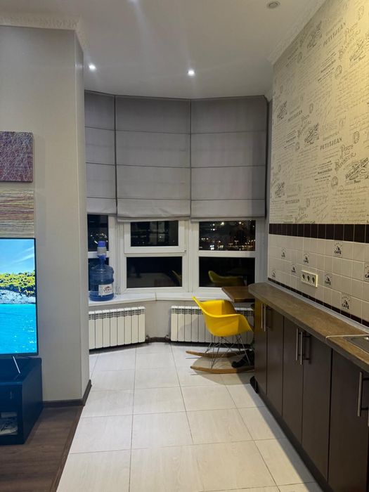 Сучасний ремонт, окрема спальня з двоспальним ліжком, велика кухня-студія з балконом та панорамним видом на місто, міні-гардеробна, простора ванна кімната.