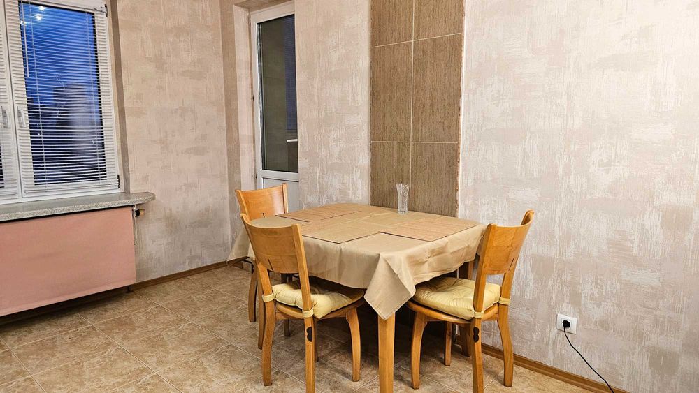 • Кухня-їдальня - простора, з виходом на лоджію. Повний набір кухонного обладнання та меблів, обідній розкладний стіл з набором стільців.