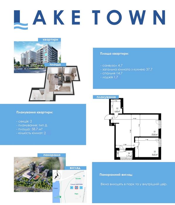 Продам квартиру в ЖК «Lake Town»; Продам квартиру в ЖК Лейк Таун, комфортний 3-й поверх, вікна на парк та озеро. На стадії будівництва, здача в експлуатацію 3 квартал 2026 року. Переуступка.