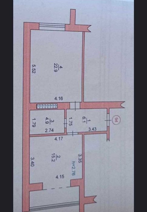 Кімната — 22,9 кв. м, коридор, кухня з балконом, санвузол.