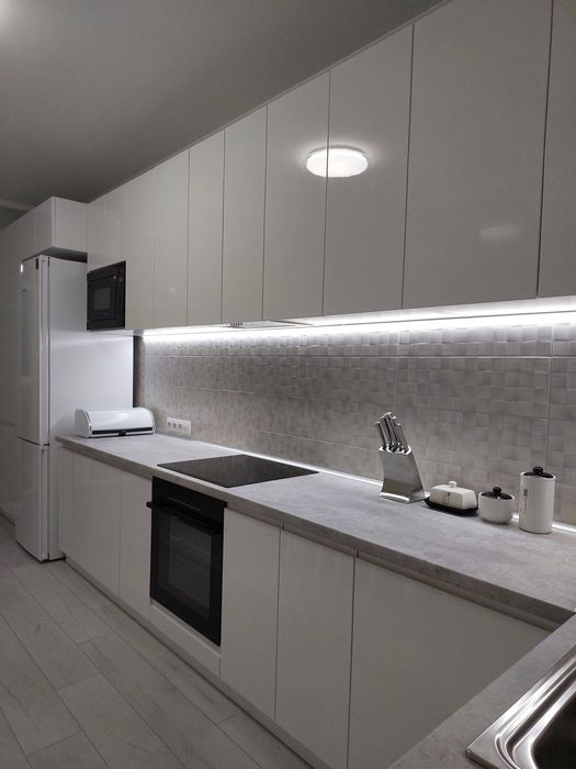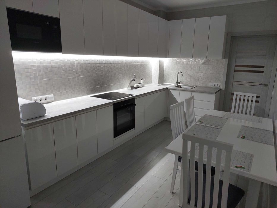 В наявності 4 ліжка з якісними матрацами, варильна поверхня, духова електрична шафа, кондиціонер, пральна машина, бойлер, посудомийна машина, СВЧ, холодильник, квартира укомплектована всім необхідним посудом.
