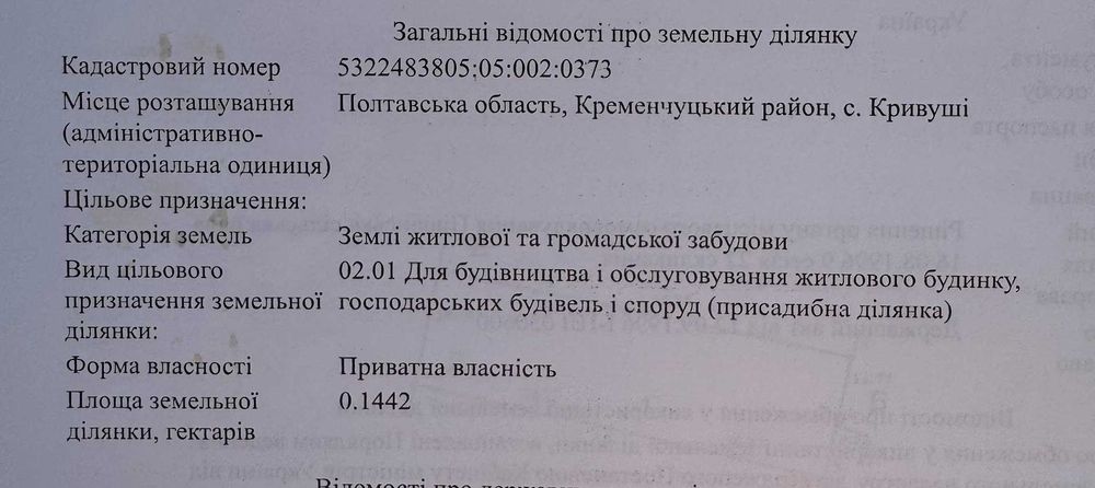 | Земельна ділянка: |