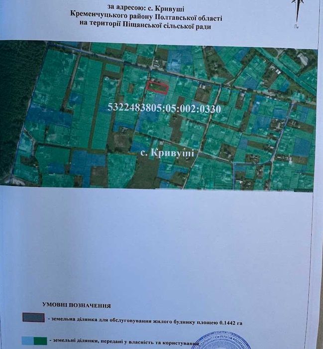 Земельна ділянка в Кривушах; Продається земельна ділянка в селі Кривуші. Загальна площа - 14 соток.