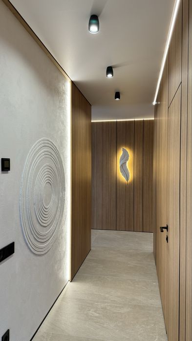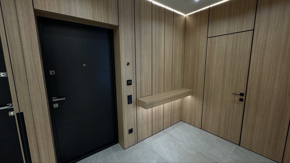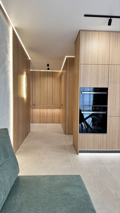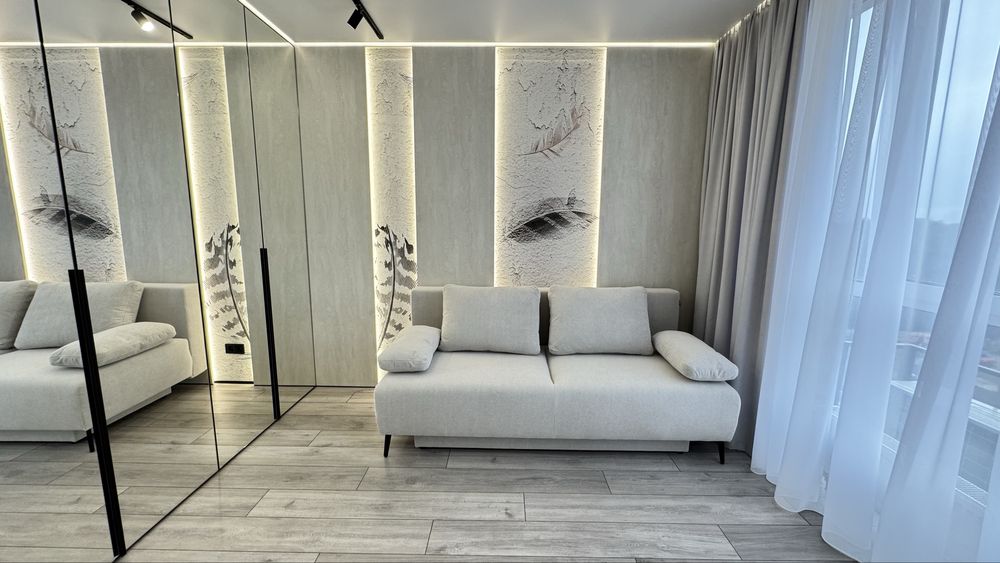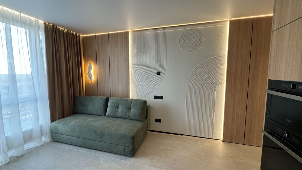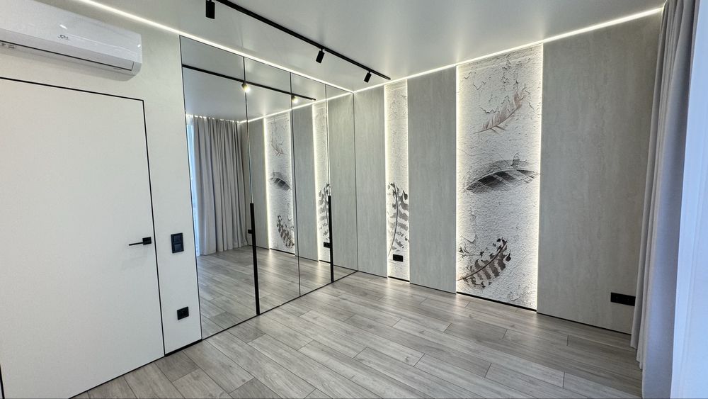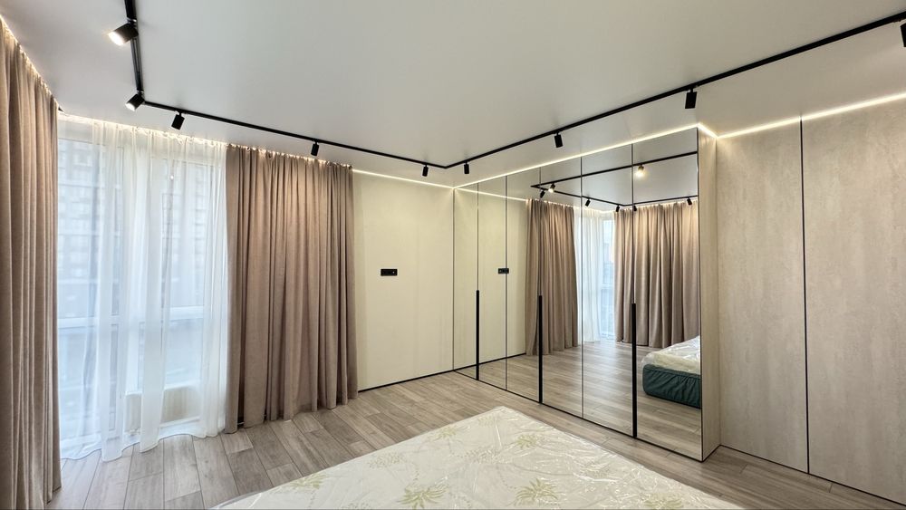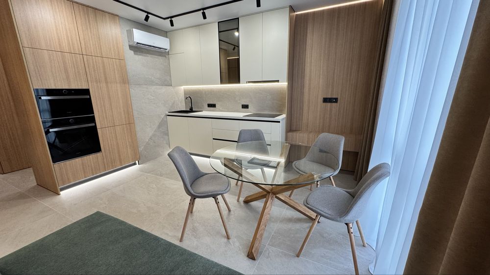 В квартирі є всі необхідні меблі для проживання. Холодильник, мікрохвильова піч, духова піч, варильна поверхня , посудомийна машина, диван в кухні-вітальні та в дитячій кімнаті, 2 телевізори. Пральна машина з функцією сушки та бойлер знаходяться у технічному приміщенні, щоб не псувати інтерʼєр ванної кімнати та гостьового санвузла. У всіх кімнатах та на кухні є кондиціонери. Панорамні вікна додають простору та світла. На вікнах тюль та штори в усіх кімнатах та на кухні. В спальні є велике двомісне ліжко з ортопедичним матрасом та величезна шафа для зберігання речей. В коридорі та дитячій також велика шафа для речей. В квартирі реалізовано багато різних підсвіток з перехідним вмиканням та вимиканням, на стінах панелі та декор з високоякісної італійської штукатурки, тепла підлога.