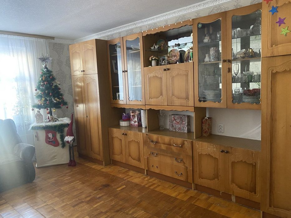 Дарницький; Квартира 4х кімнатна; Простора 4х кімнатна квартира. Довгий коридор, по якому розходяться кімнати. Балкон переходить з кухні у велику кімнату. На кухні є евровікно з евродверима. Інші вікна і балкон дерев'яні. Є загальний хол з сусідом, відокремлений від інших сусідів. Чотири кладові. На кухні холодильник захований в нішу, що економить місце. Квартира знаходиться по вулиці Олійника 8.