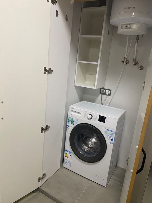 * Простора ванна кімната з душовою зоною, вбудованою шафою для бойлера, пральної машини та зберігання речей.
