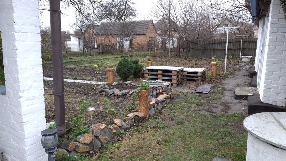 3 кімнати, житловий стан, більшість меблів залишається. На подвір’ї — літня кухня, сарай, клумби, місце під город.