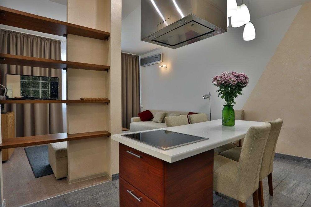 Шевченківський; Оренда 2 кім. дизайнерської квартири, вул.Юрія Іллєнка,18-б, ЖК Парус; Без комісії. Довгострокова оренда 2-х кімнатої квартири з дизайнерським ремонтом по вул.Мельникова (Юрія Іллєнка), 18-б, ЖК «Парус», розташована на 10 поверсі 23 пов.буд., загальна площа 81м2, житлова 61м2, кухня-студіо. Квартира укомплектована всією необхідною побутовою технікою (в т.ч. холодильник, посудомийка, духова шафа, мікрохвильова піч, два кондиціонери, два ТВ, пральна машина, бойлер, душовою кабіною, джакузі, теплі підлоги). Інтернет, домофон.