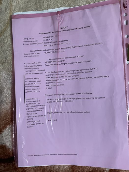 продам землю Львівська область Яворівський район село Підрясне