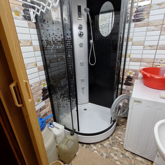 У ванній — нова плитка, душова кабіна, умивальник