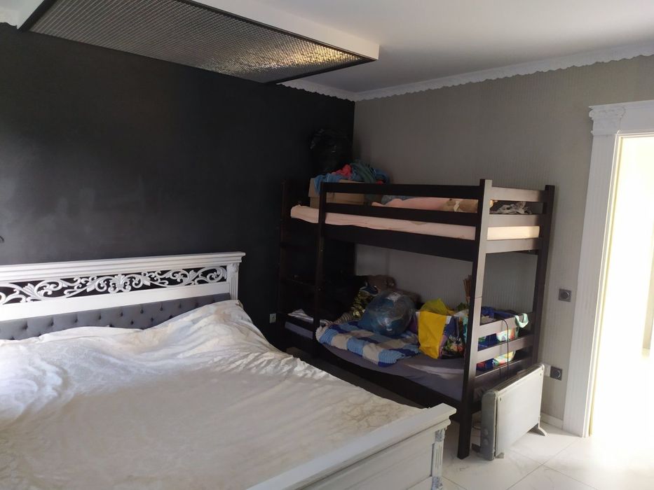 Одна велика, світла кімната, у якій знаходиться двоспальне ліжко, двоповерхове дитяче ліжко, комп’ютерний стіл із кріслом, а також дві великі вбудовані шафи.