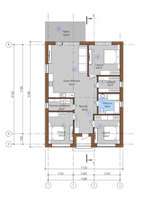 - Гардеробна, котельня.