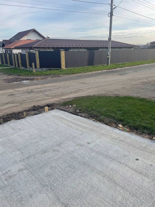 Забор -металопрофіль, на фасаді - металопрофіль із бетонними стовпчиками.