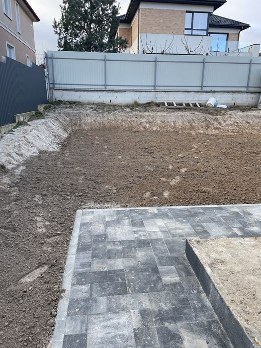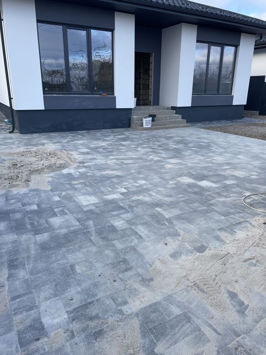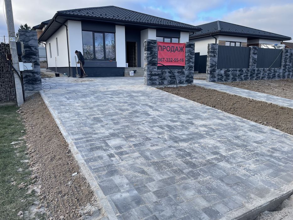 Заїзд, стоянка під авто та відмостки будуть вимощені сучасною бруківкою.