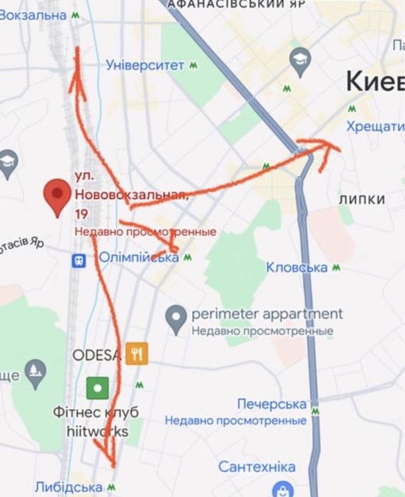 Розташування квартири в тихому спокійному місці поряд з центром. Відстань до Хрещатика 3 км. Час до м. Олімпійської 15 хв пішки, до м. Вокзальна і м. Палац Україна 20 хв пішки, до зупинки громадського транспорту 3 хв. В близькості 5 хв знаходиться зупинка міської електрички. Також поряд є великий спортзал "СпортЛайф" з басейном і сквошем 5 хв від будинка. До торгового центру Ocean Plaza 5 хв на авто. До школи та садочку 10 хв. Біля будинку розташована парковка, де є місце для автомобіля.