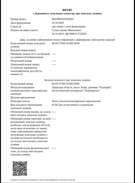 • Документи в порядку: приватизовано, є кадастровий номер