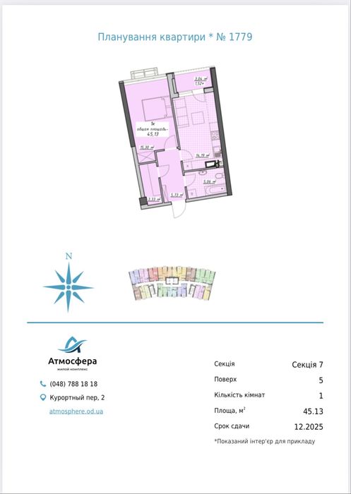 Приморський; ЖК Атмосфера продам квартиру вид на море!; Продам квартиру в ЖК Атмосфера в 7 секции , 5-ый этаж !