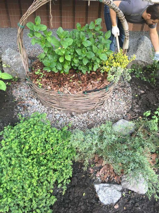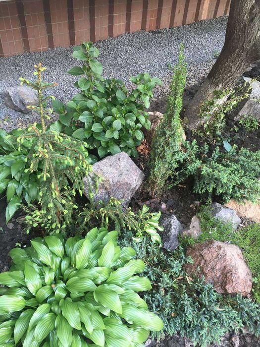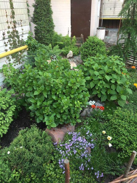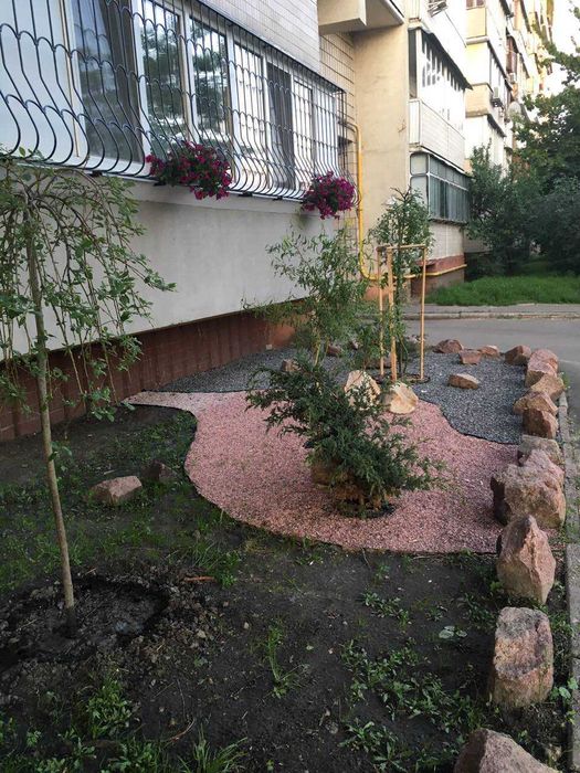 Зона під вікнами та балконом із ландшафтним дизайном.