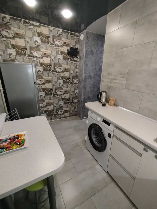 Наливна підлога, вирівняні стіни, ванна , кухня - кахель.