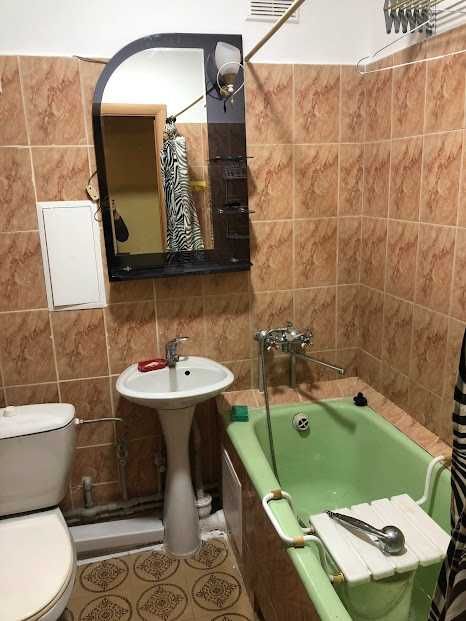 Площа кімнати-18 кв.м., кухня -8 кв.м, кухонні меблі, куток, ванна, пральна машина, прасувальна дошка, бойлер, кондиціонер, витяжка на кухні, лоджія та дві комори. Оплата перший і останній місяць плюс комунальні послуги.