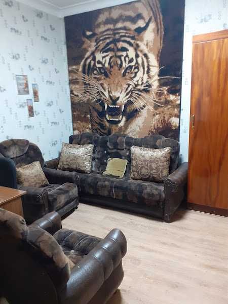2 смежные комнаты,кухня,ванная в двухэтажном доме на первом этаже.Есть парковочное место во дворе для автомобиля.