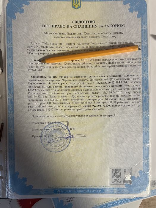 | Земельна ділянка: |