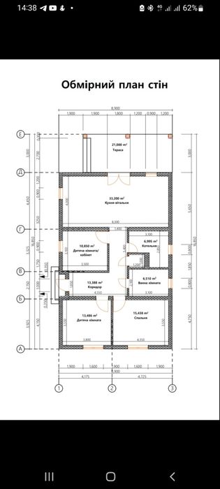 Планування: простора кухня-вітальня, 3 житлові кімнати, ванна кімната, санвузол, котельня-тех. приміщення, велика тераса. Площі кімнат та загальне планування можна подивитись на плані зверху.