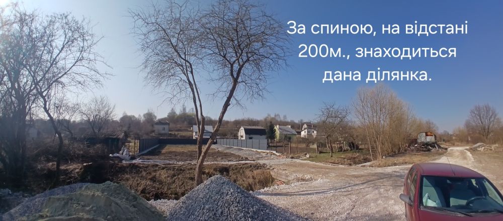 Розташована приб. 800 м до окружної дороги і 200м. до комунікацій. Геомітка на фото -точна. Невеликий ухил до південної сторони, - тепла, соняна сторона, також повна відсутність застою води на грунті. В даному часі на деяких сусідніх ділянках вже розпочата підготовка до будівельних робіт, що в свою чергу автоматично підніматиме вартість землі.