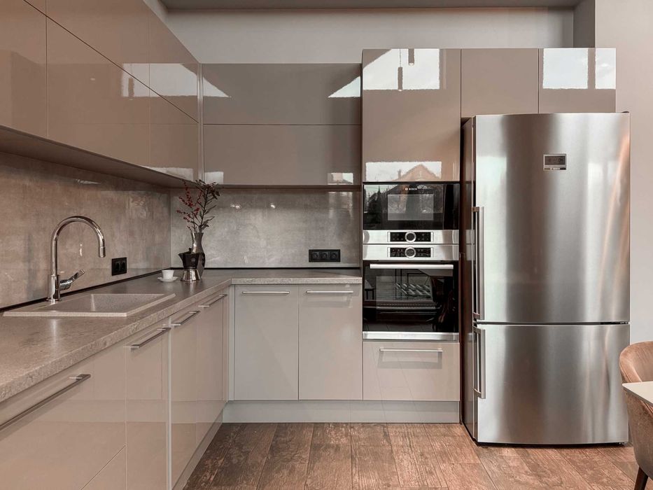 Всі меблі на замовлення на Блюм фурнітурі включно з кухнею.
