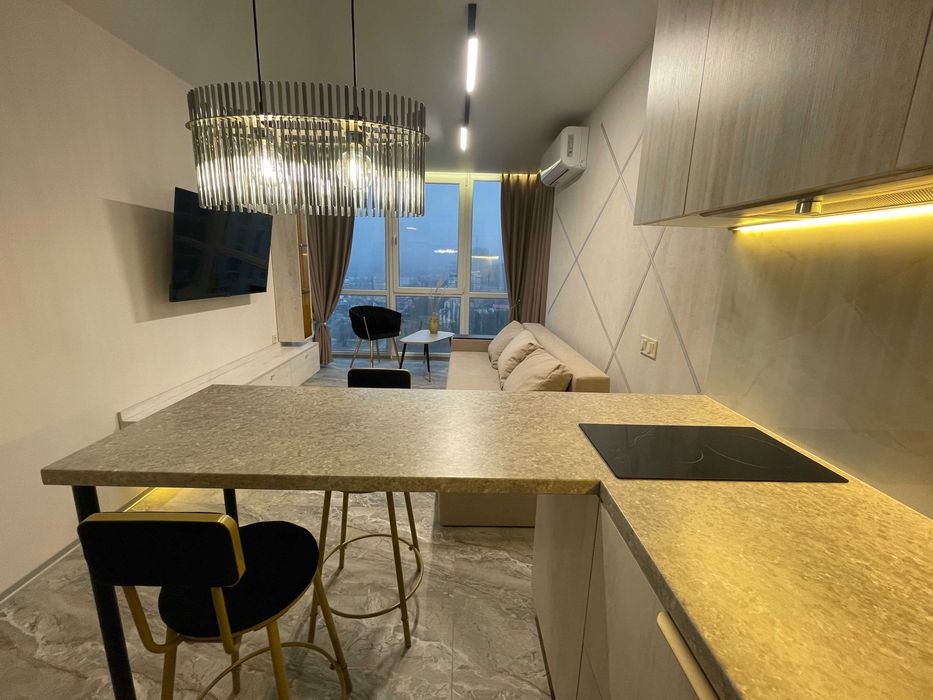 Святошинський; Здається стильна квартира в ЖК 4 U; Атмосферна квартира в сучасному стилі в ЖК 4U. Локація дуже вдала. Квартира в 10 хвилинах пішки від станції метро «Академмістечко», за 7 хвилин пішки ви дійдете до залізничної станції «Новобіличі», де проїжджають приміські електрички. До центру міста ви доїдете за півгодини на авто по проспекту Перемоги. В 1,5 км від ЖК знаходиться зелена зона «Лісова поляна», де можна прогулятися в оточенні соснового лісу. Поряд супермаркети, кав'ярня, аптека, школа, зупинки громадського транспорту. Квартира облаштована всією необхідною технікою: ТВ, кондиціонер, мікрохвильовка з грилем електрична вбудована, посудомийна машина, електрочайник, варильна поверхня, холодильник вбудований, пральна машина з сушкою, бойлер, праска, роутер, лічильники води і електрики. Будинок монолітно-каркасний, вікна з п'ятикамерним профілем і товщиною склопакета до 41 мм, підлога - керамограніт, в ванній кімнаті, кухні-вітальні з підігрівом. Вітальня - стіл зі стільцями, , стіл для кави з кріслом. Кухня - кутова, витяжка. Ванна - керамограніт, душ, унітаз консольний, душ гігієнічний. Квартира функціональна, має багато місць для зберігання , дуже комфортна, зроблена з любов'ю. В домі є ГЕНЕРАТОР та автономне ОПАЛЕННЯ. Тобто, при відключенні електроенергії, у квартирі присутні опалення та вода, а також працюють ліфти та освітлення місць загального споживання. Квартира здається порядним платоспроможнім людям від ВЛАСНИКА. Без дітей і тварин. Перша здача! ВІДЕО ПО ЗАПРОСУ. Торг