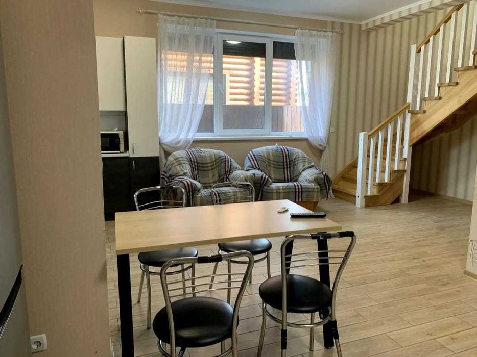 2 поверх: 2 спальні кімнати, санвузол. В одній спальній кімнаті двоспальне ліжко, у другій два односпальних. Шафи для одягу, робочий стіл, розрахований на 2 робочих місця, кондиціонер.