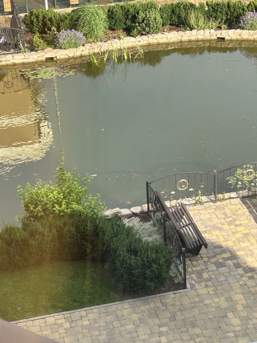 Прибудинкова територія схожа на ботанічний сад з озерами.
