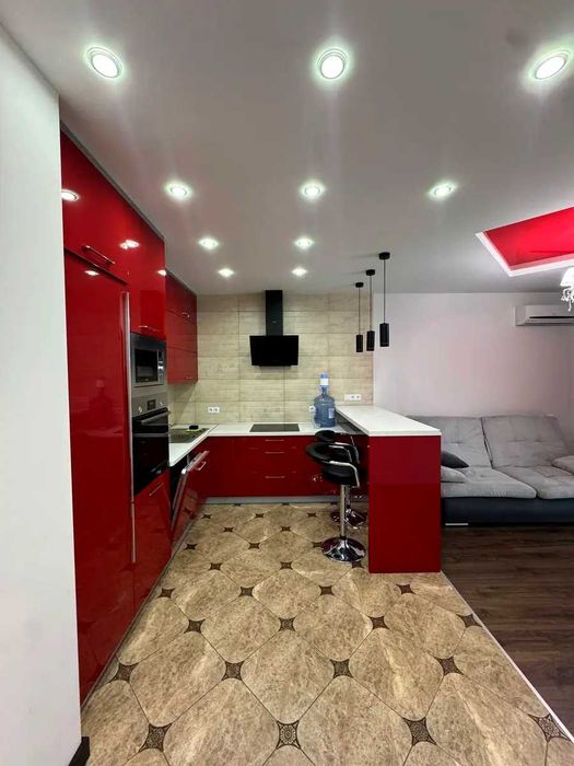 Простора кухня-вітальня, спальня, санвузол, балкон.