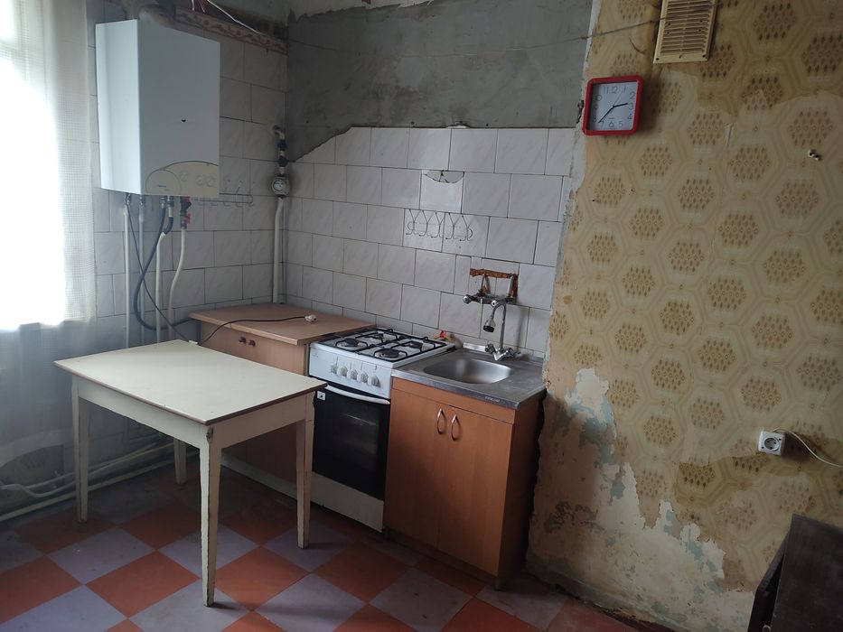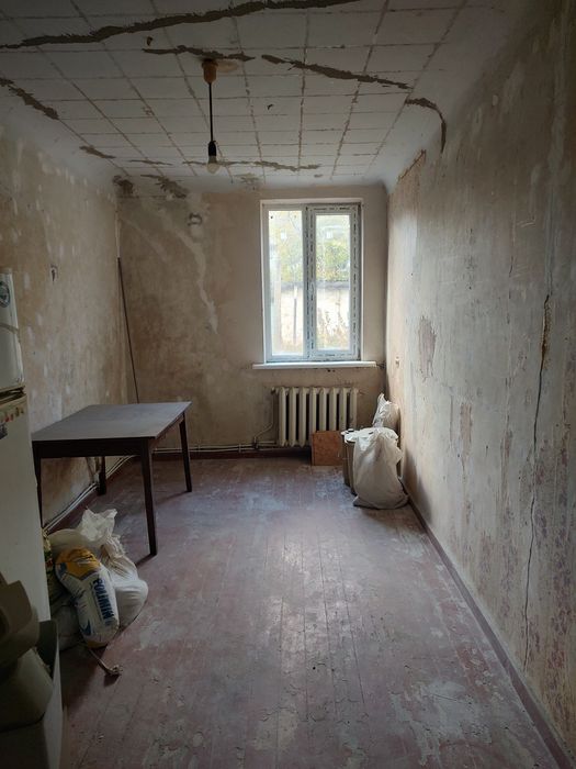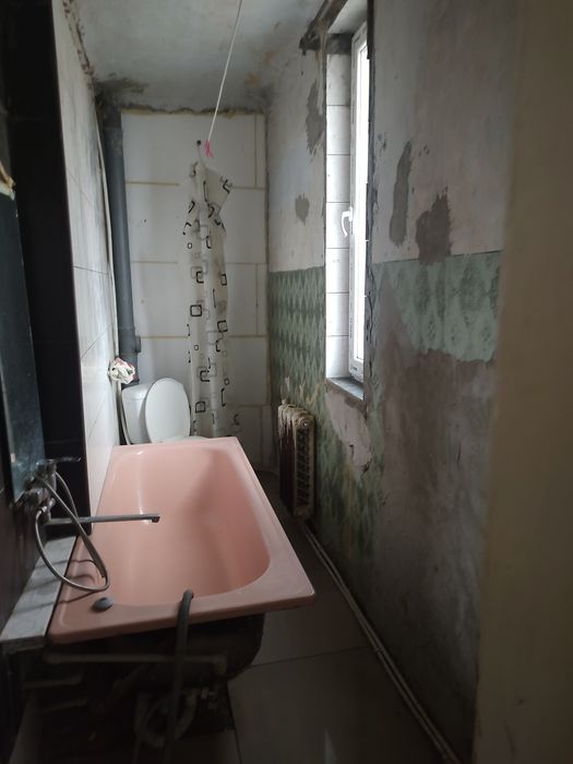 У ванній частково зроблений ремонт (є кахель на стіні). Спальня повністю підготовлена під ремонт, в інших кімнатах треба знімати старий матеріал (шпалери, плитка на стелі)