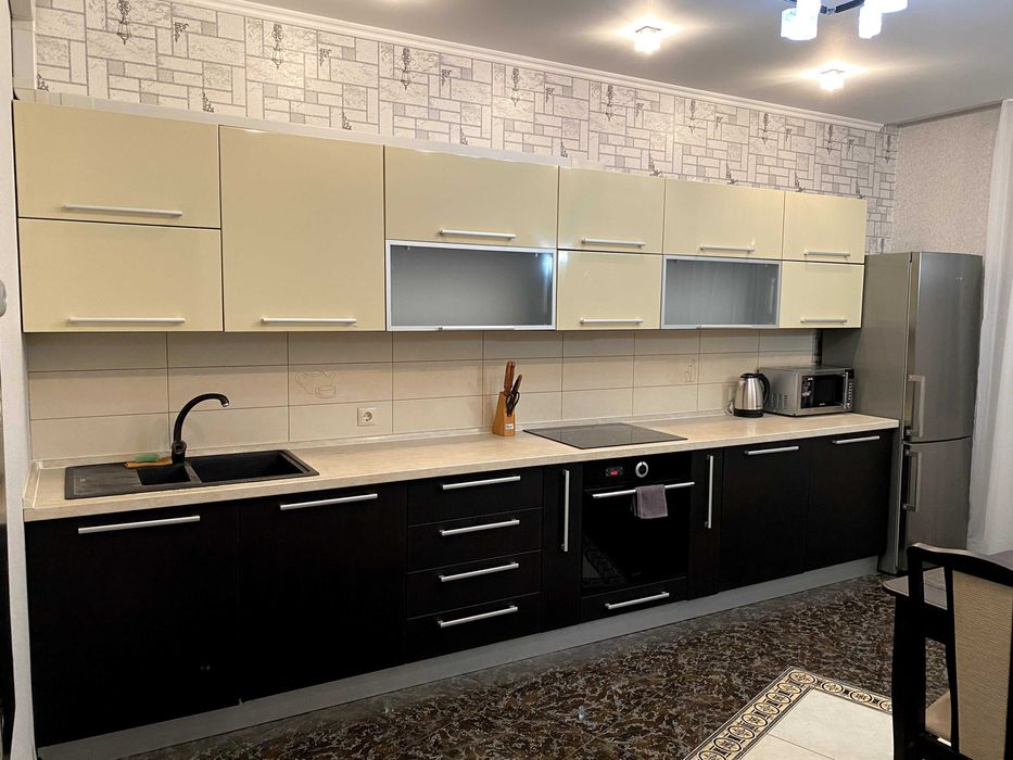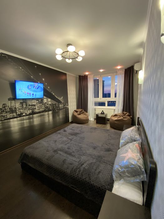 У квартирі зроблений якісний ремонт, повністю укомплектована меблями та технікою. Вбудована кухня, 2 шафи-купе, двоспальне ліжко (спальне місце 1,8 м на 2,0 м), приліжкові тумби.