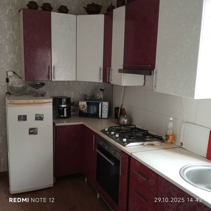 Продам полдома в Коростене.; Продам полдома в районе завода Янтарь, 61 м2, дом деревянный обложен кирпичем и утеплён. В доме есть все коммуникации, индивидуальное газовое отопление. Прихожая, с/у, кухня 12м2, спальня 12м2 и вторая 8м2, зал 16 м2. Во дворе качеля, беседка, мангал, два сарая, гараж, летний душ и туалет, хоз двор, огород, клумбы, молодые фруктовые деревья. В дома остаётся вся мебель и техника.; кадастровий номер: есть