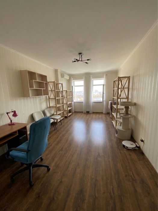Планування: світла вітальня, затишна спальня з вікнами у тихий двір, простора кухня — 15,4 м, два санвузли (5,7 м, 1,8 м), один з яких з великою ванною, дитяча (чи дві окремі дитячі з власною гардеробною), коридор. Окремо відгороджена додаткова територія коридорного приміщення (десь 15 квадратів) для одягу та зберігання речей. Висота стель — 2,71 м.