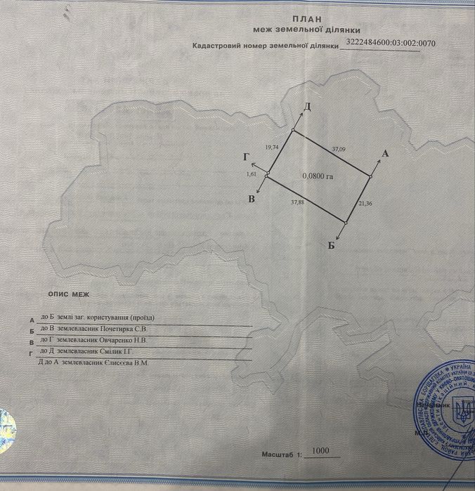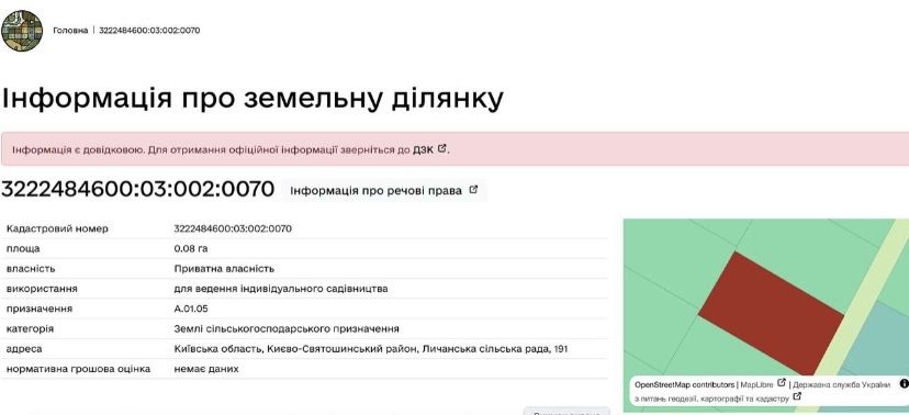 | Земельна ділянка: |