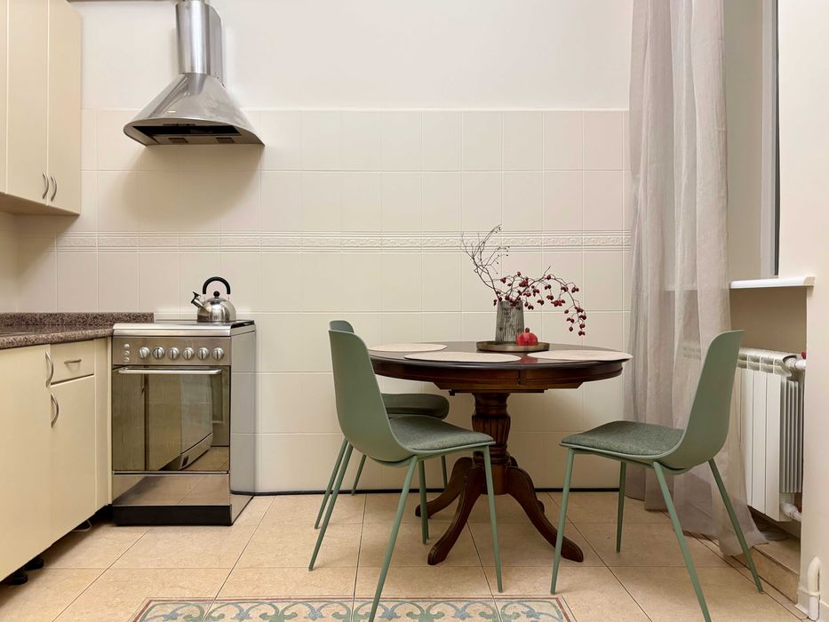 Квартира знаходиться у 10 хвилинах їзди від центру та в 5 хвилинах пішки від метро Лук’янівська