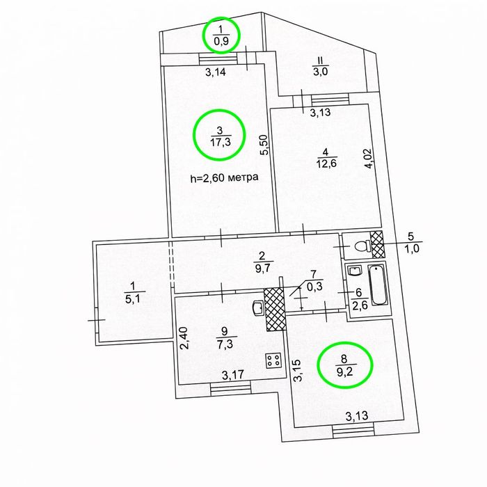 У власності дві окремі кімнати площею 17,3 м² та 9,2 м².