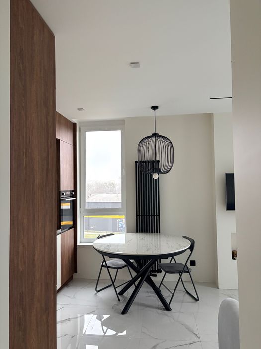 Повністю обладнана кухня з електроефективною технікою(холодильник, посудомийна машина, духова шафа та індукційна варочна поверхня).