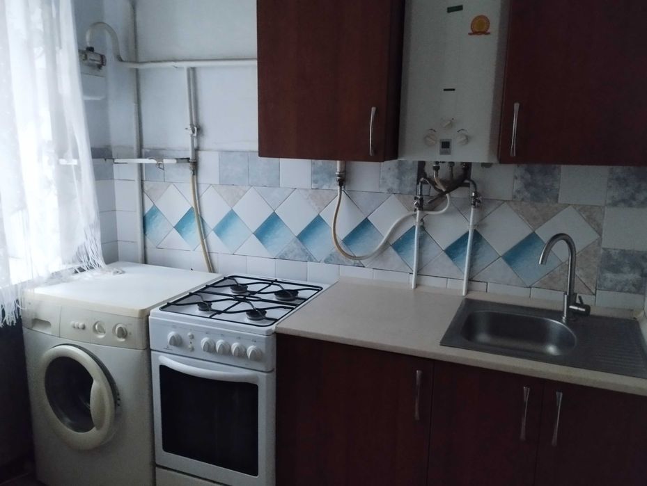 В квартирі є газова колонка, холодильник, пральна машина, шкаф, 2 ух спальний диван.