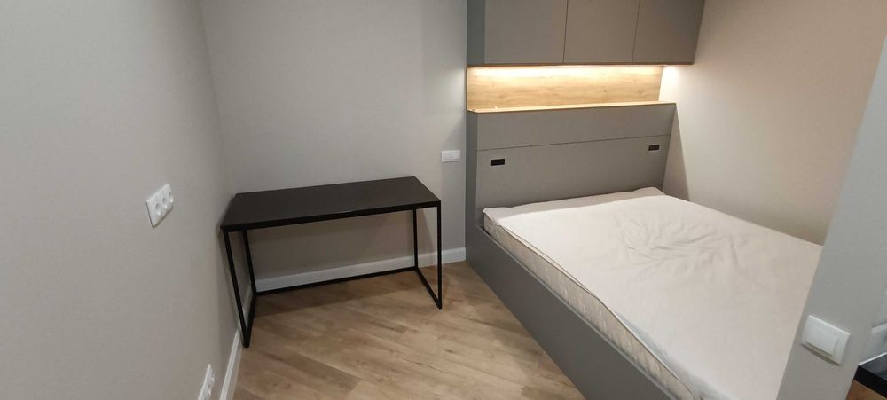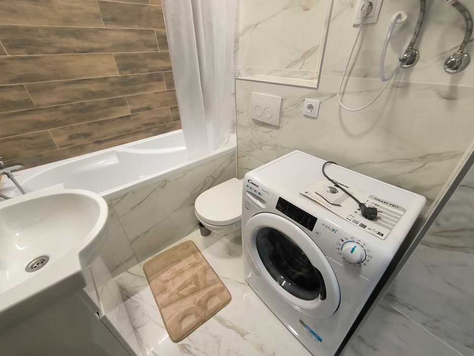 Оснащення: тепла підлога, велике ліжко, меблі, індукційна плита, холодильник, пральна машина з функцією WIFI-керування, проведено та підключено оптоволокно, WiFi, бойлер, витяжка на кухні та у вбиральні, шафа з полицями та шафа гардероб, стіл, стільці, є робоче місце.