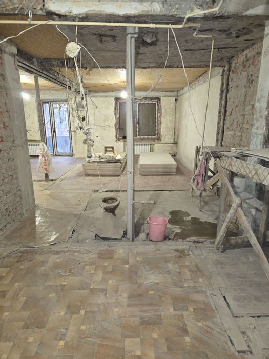 Зроблено всі чорнові роботи, немає перестінків, тільки несучі стіни. Залізобетонні перекриття. На вікнах встановлені зовнішні автоматичні ролети. Нові дорогі склопакети (золотий дуб) та підвіконня (верзаліт), великі вікна, броньовані двері (straj), італійські батареї, поміняно стояк за перекриттям, повна реконструкція балкона (нова бетонна плита, відкритий, ковка, ролет на балконних дверях). В квартиру заведено новий ввід електрики. Також є газова колонка ( можливість встановити приватне опалення). Квартира дуже тепла та світла, вікна виходять на дві сторони. В квартиру завезено гіпсокартон на всі стіни та перестінки.