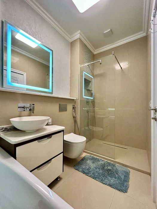 Індукційна плита, кам'яне миття, тепла підлога, Спа-зона з ванною та окремим душем зі скляною перегородкою.
