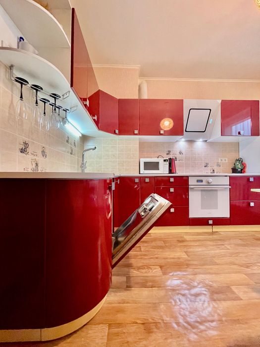 Вбудована кухня, вся техніка: посудомийна машина, вбудований холодильник, мікрохвильова піч, система очищення води.