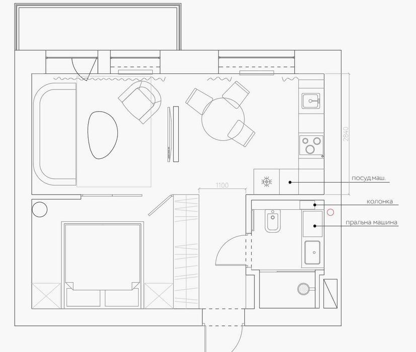 Площа квартири - 37 м.кв.